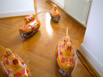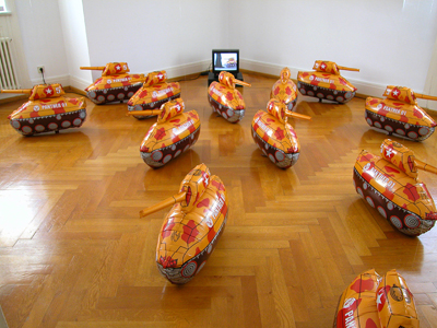 Videoinstallation mit Panzerluftballons, Größe variabel