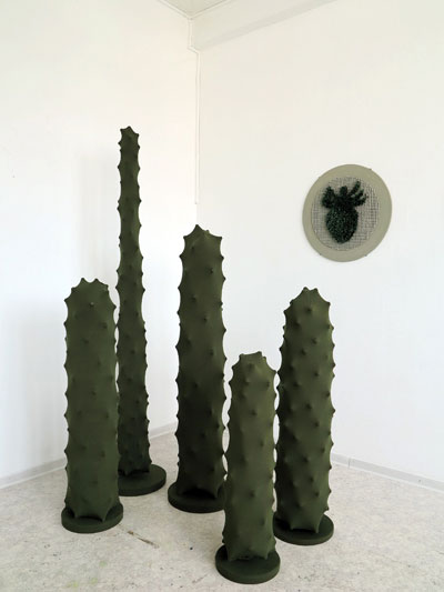 Gips, Erde, Holz, Kunstgras, Scharniere. Größe variabel