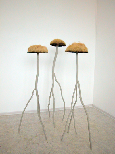 ausgestopfte Maulwürfe, Teppichboden, Erde, Gips