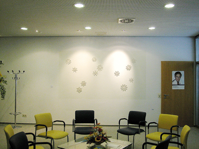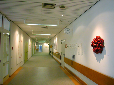 Ansicht der Ausstellung in der Rheumaklinik in Baden-Baden, 2008. Diese Objekte sind teilweise extra für die Austellung gemacht geworden.