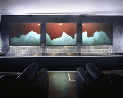 Auf eine Wasserwand werden in ca. 20 Minuten ca. 99 Fotos projeziert.