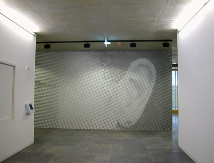 Es handelt sich um ein gerastertes Foto "écoutevoir" im Eingangsbereich (7,58 x 3,04 m).